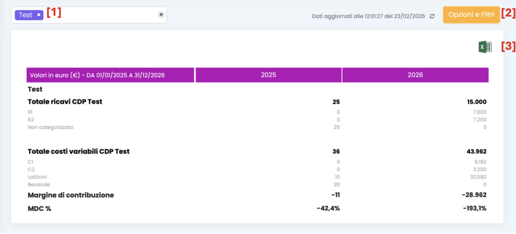 - Selezionare il centro di profitto da analizzare, cliccando nella barra in alto a sinistra;
