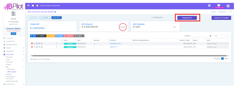 Questa funzionalità sfrutta il sistema OCR integrato in BPilot, che consente di leggere automaticamente il contenuto del PDF ed estrarre le informazioni necessarie per generare il relativo DDT o Fattura.