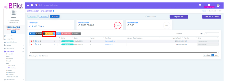 Se il DDT Fornitore o la Fattura di Costo è disponibile in formato XML, è possibile importarlo cliccando sul pulsante “Importa”.