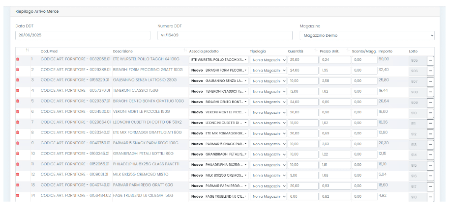 → il prodotto viene caricato a magazzino e associato a un nuovo lotto.