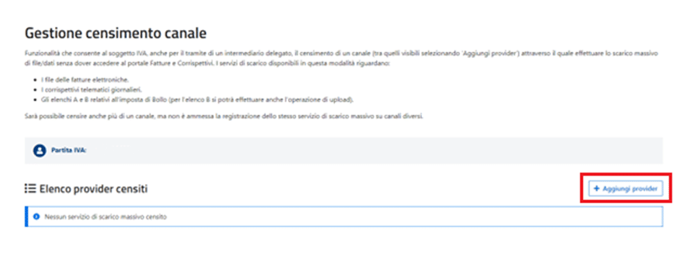 Successivamente clicca su “ + Aggiungi Provider”