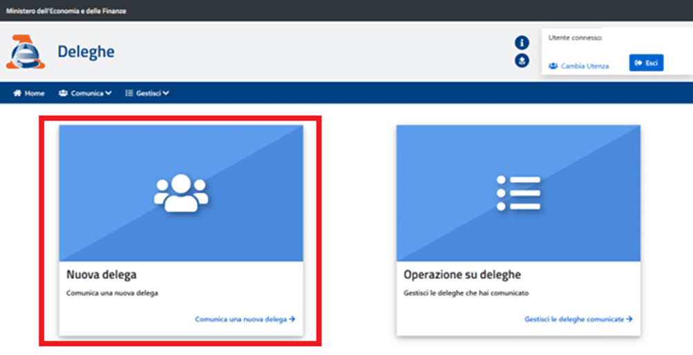 Clicca su “ Comunica una Nuova Delega”