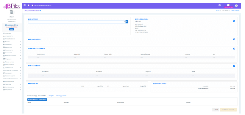accesso al flusso di carico automatico è la creazione di specifici documenti: Ordine