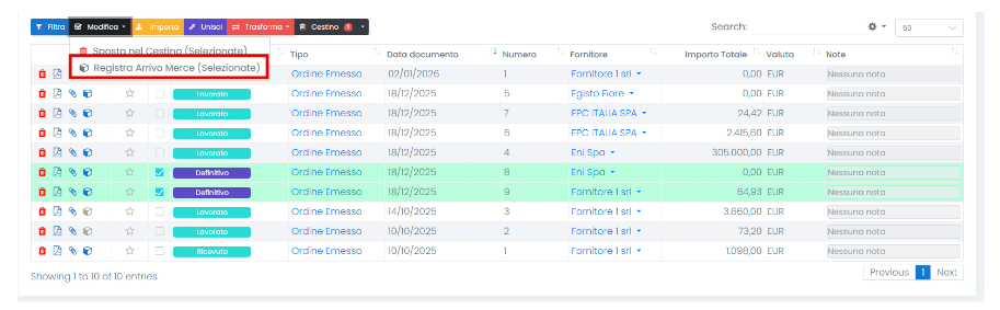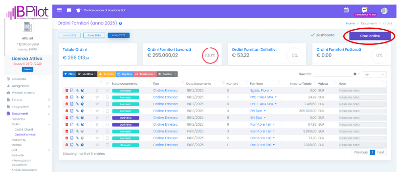 Ordini > Ordini Fornitori