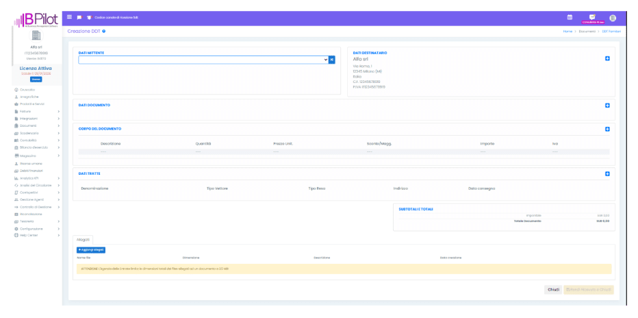 del corpo del documento precompilate con i dati del DDT. Confermando la modale avviene il
