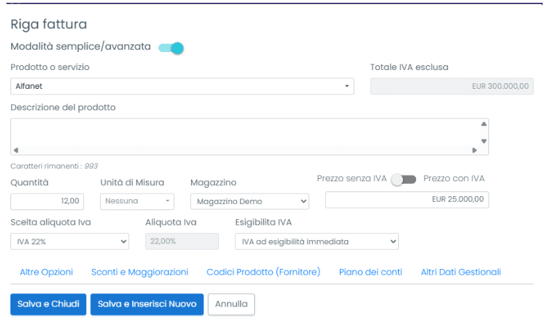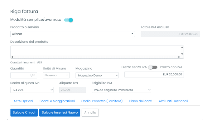 4. Tipologia (editabile): se “Non a magazzino”, il prodotto non genera carico