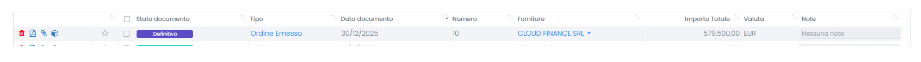 Nel “corpo del documento” è possibile inserire uno o più prodotti ordinati dal fornitore.