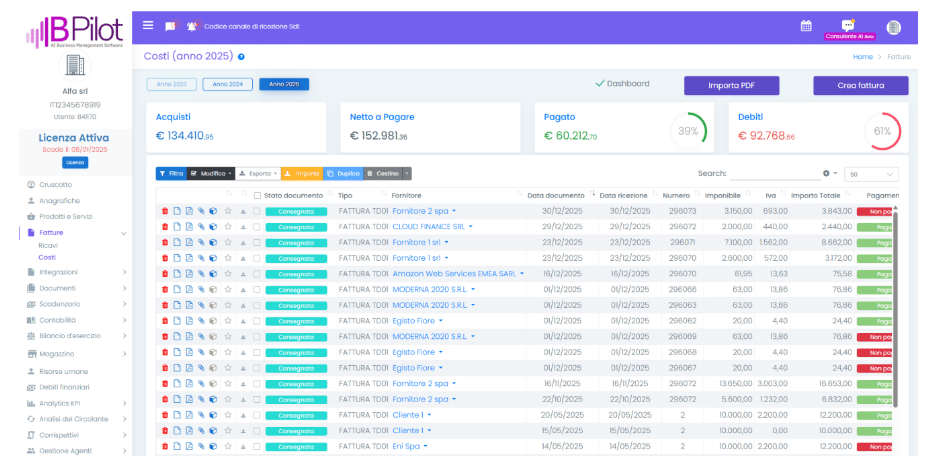 nella sezione Fatture > Costi. Il pulsante sarà però abilitato solo se la fattura è in stato