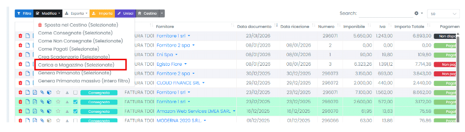 e cliccare Modifica > Carica a Magazzino: