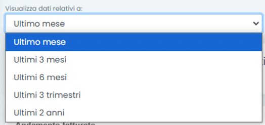 Cliccando sul filtro è possibile visualizzare i dati relativi all’Ultimo mese, Ultimi 3 mesi, Ultimi 6 mesi, Ultimi 3 trimestri e Ultimi 2 anni.