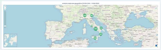 Ad esempio, applicando un filtro per area geografica e selezionando Italia, nelle altre tab vengono visualizzati esclusivamente i risultati associati a tale area.