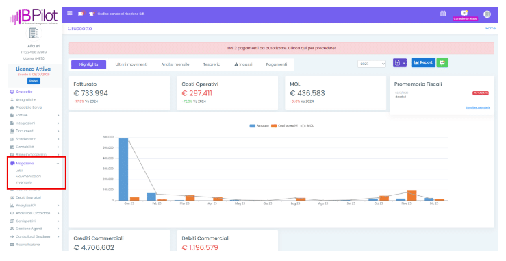 È possibile visualizzare e selezionare il modulo “Magazzino” dalla dashboard principale: