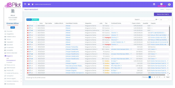 La sezione Movimentazioni permette di visualizzare tutte le movimentazioni di carico, scarico,