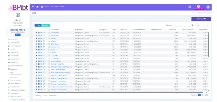 La sezione Lotti permette di visualizzare tutti i lotti generati nei magazzini con tutte le relative informazioni associate.