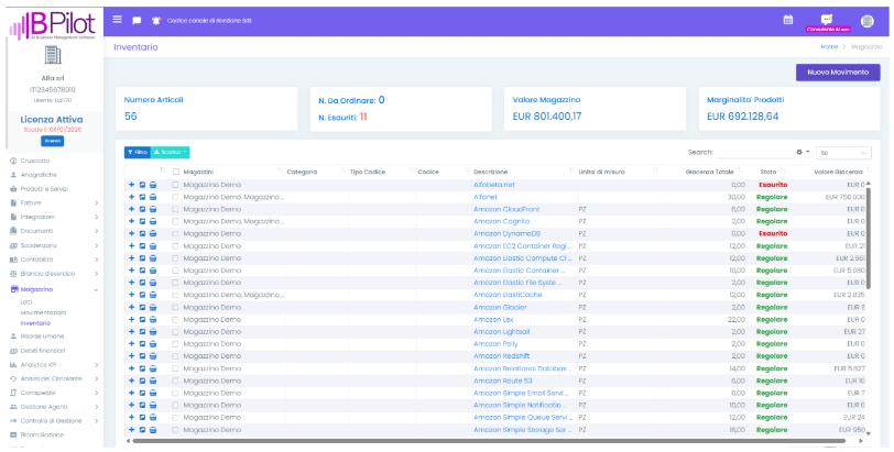 - Magazzini: viene indicato in quali magazzini è presente il prodotto