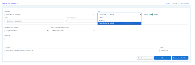 - semplicemente Carico / Scarico se la movimentazione è effettuata manualmente
