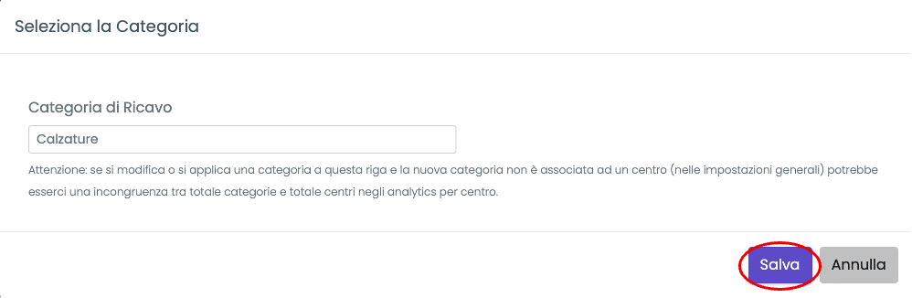 • Seleziona la categoria da assegnare alle righe scelte e poi clicca su Salva: