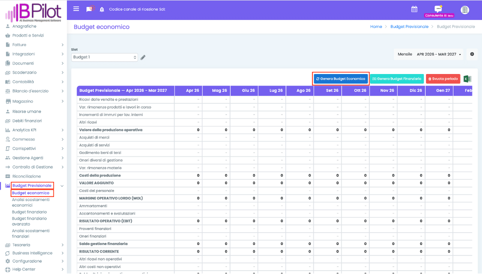 Inseriti tutti i parametri di configurazione, cliccando su Salva sarà possibile generare il Budget Economico.