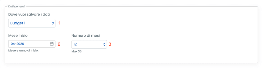 - Numero di mesi (3): definisce l’estensione temporale del Budget Economico (massimo 36 mesi);