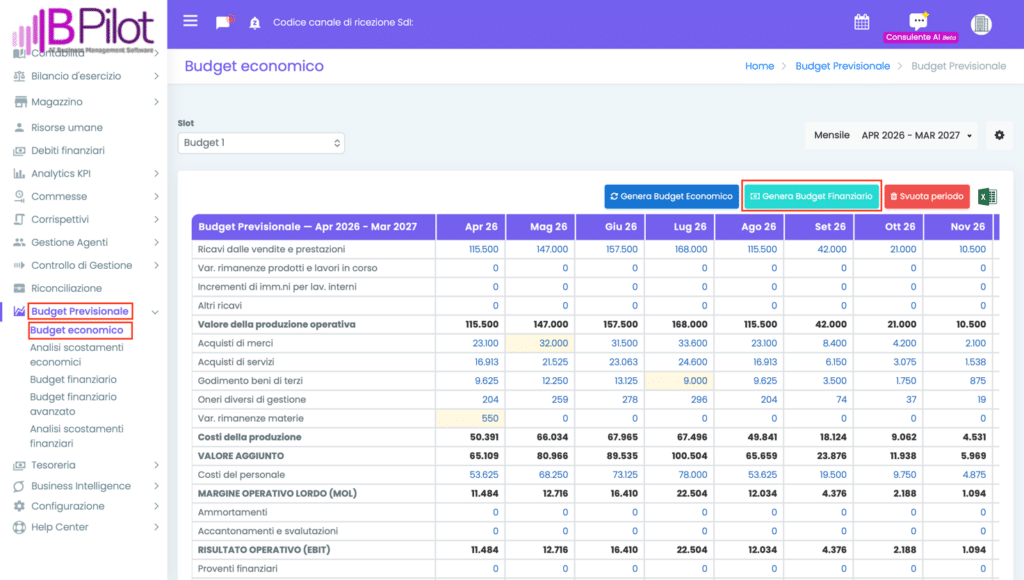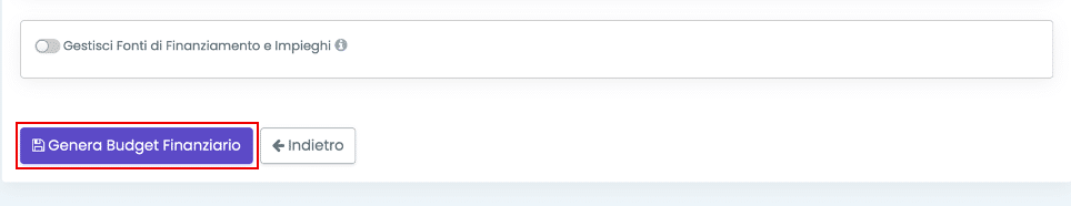 Inseriti tutti i parametri di configurazione, cliccando su Genera Budget Finanziario sarà possibile generare il Budget Finanziario.