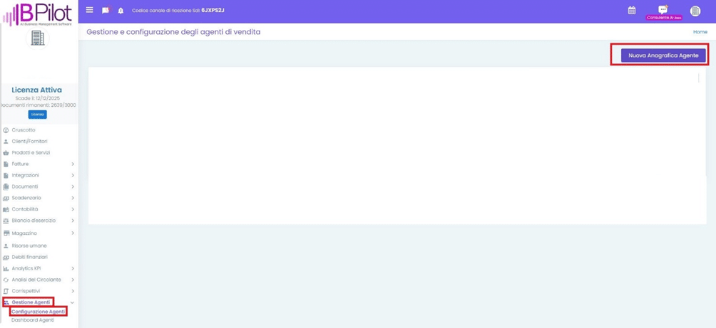 Dal menu laterale sinistro di BPilot, accedere a Gestione Agenti → Configurazione Agenti e cliccare su Nuova Anagrafica Agente.
