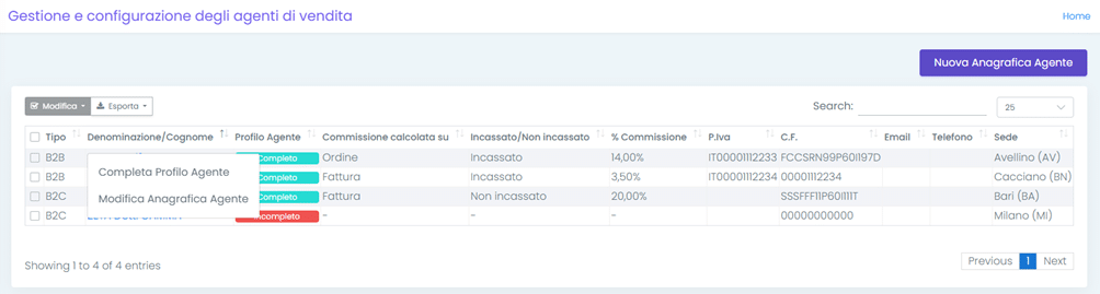 Per configurare correttamente la gestione agenti, il primo passaggio consiste nella creazione delle singole anagrafiche degli agenti di vendita.