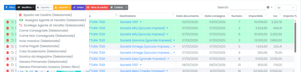 Selezionare le fatture che si desidera assegnare all’agente e cliccare su Modifica: