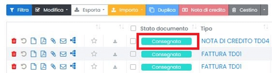 La piattaforma genera in automatico i pdf in base al modello selezionato nelle preferenze per la tipologia di documento o per il profilo di fatturazione. Puoi, però, sempre rigenerare un PDF selezionando un modello differente. Per rigenerare un PDF, cliccare sullo “Stato del Documento”