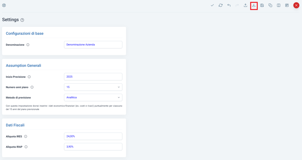 La funzionalità permette di esportare il progetto in formato Word, Pdf ed Excel, quest’ultimo solo nella versione PREMIUM.