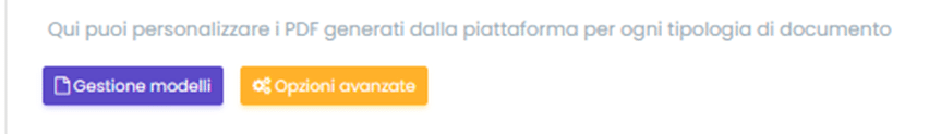 Per personalizzare i PDF generati dalla piattaforma in base ai profili di fatturazione, cliccare su “Opzioni Avanzate”