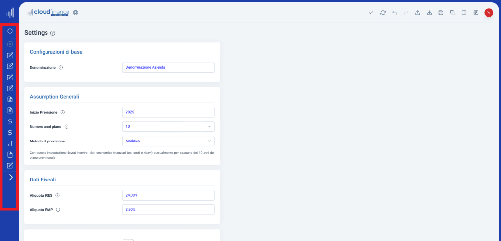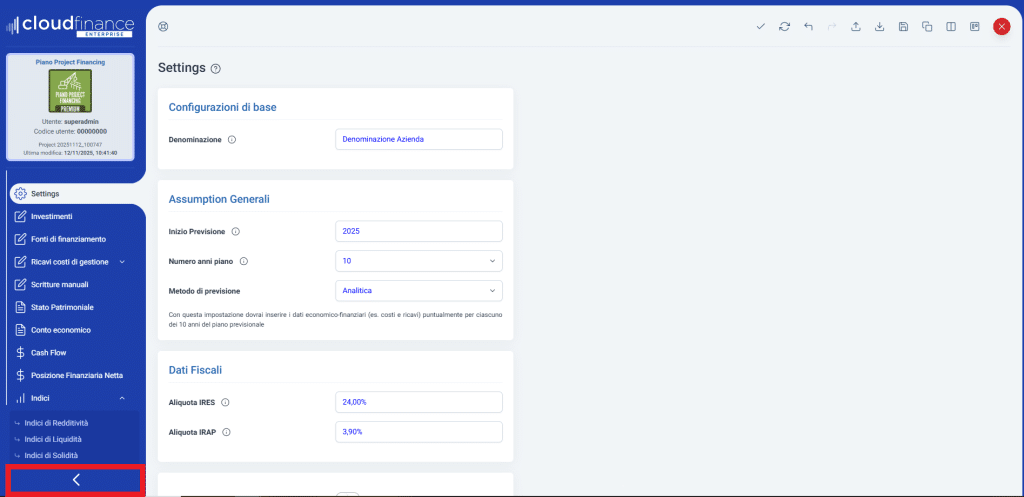 Tasto di riduzione menù laterale